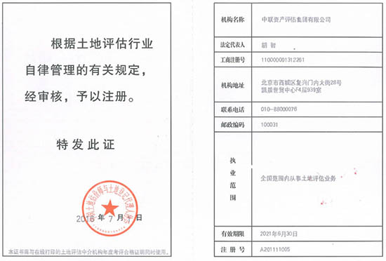 中聯評估具有國家特許在全國范圍執業的土地使用權評估資質,是國家評定的A級資信土地評估機構,具有一批土地使用權評估資深專家。