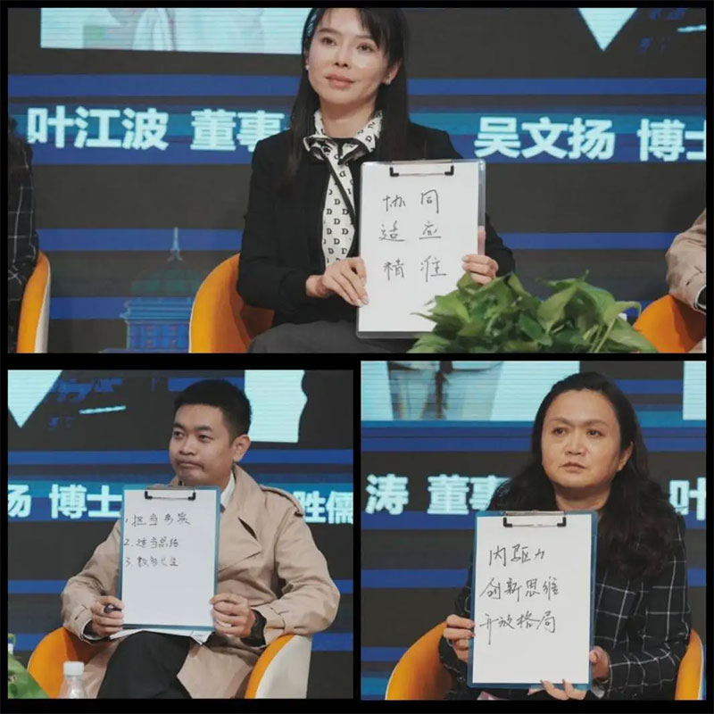 沙龍現場氣氛熱烈,內容充實。活動聚焦商業場景實戰推演,呈現多元視角的思維碰撞。張梅荷院長向嘉賓發起深度提問,共同探討數智時代下的人才發展路徑;學生代表踴躍發言,提問犀利、見解深刻,展現出新一代商科學子的思辨能力。企業家們則以白板為媒,用兩到三個關鍵詞描繪出理想中的復合型人才特質,并贈予學生留念。沙龍最后迎來兩項重要儀式:學院為嘉賓頒發企業導師聘書,組建“成長智囊團”,并舉行訂單班簽約及授牌儀式,標志著校企合作邁入深度融合的新階段。
